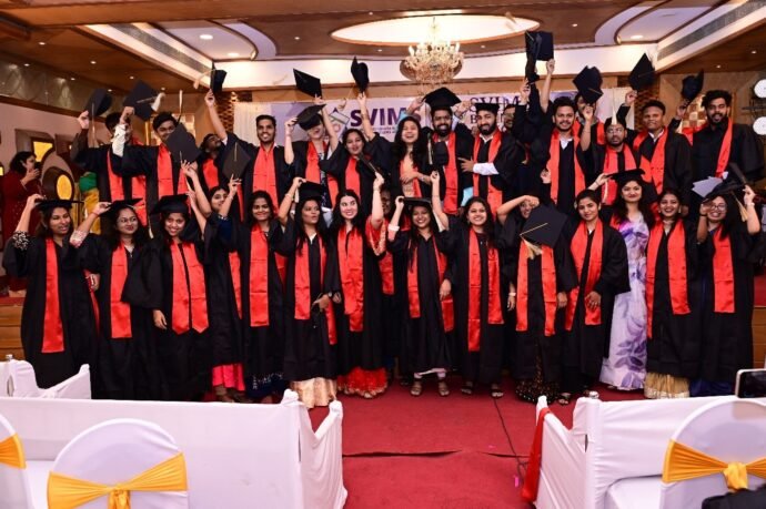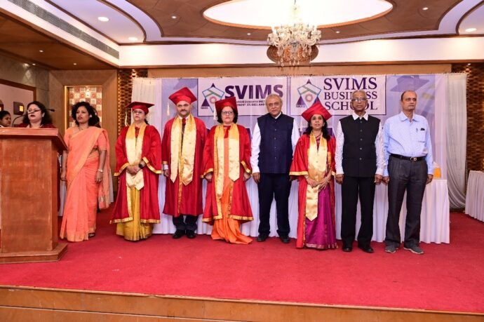 This year the SVIMS convocation ceremony for the batch (2020-22) was organized on 25 th March 2023, Saturday at Kohinoor Banquet Hall, Dadar. Dr.Vinita Pimpale was the guest of honour for the occasion. The program started with the parade ceremony following which the dignitaries took their positions on the dais. Welcome address for the occasion was given by our Director Dr. Purushottam Patil, following which Mr. Parthasarathi Naik, President of NKES society addressed the crowd. Esteemed trustee Mr. Anant Banwasi sir felicitated the guest of honour with a Tulsi Sapling. Then after the introduction of guest, the oath ceremony for the students took place headed by Dr. Vasumathy Hariharan (Prof. Dean SVIMS).