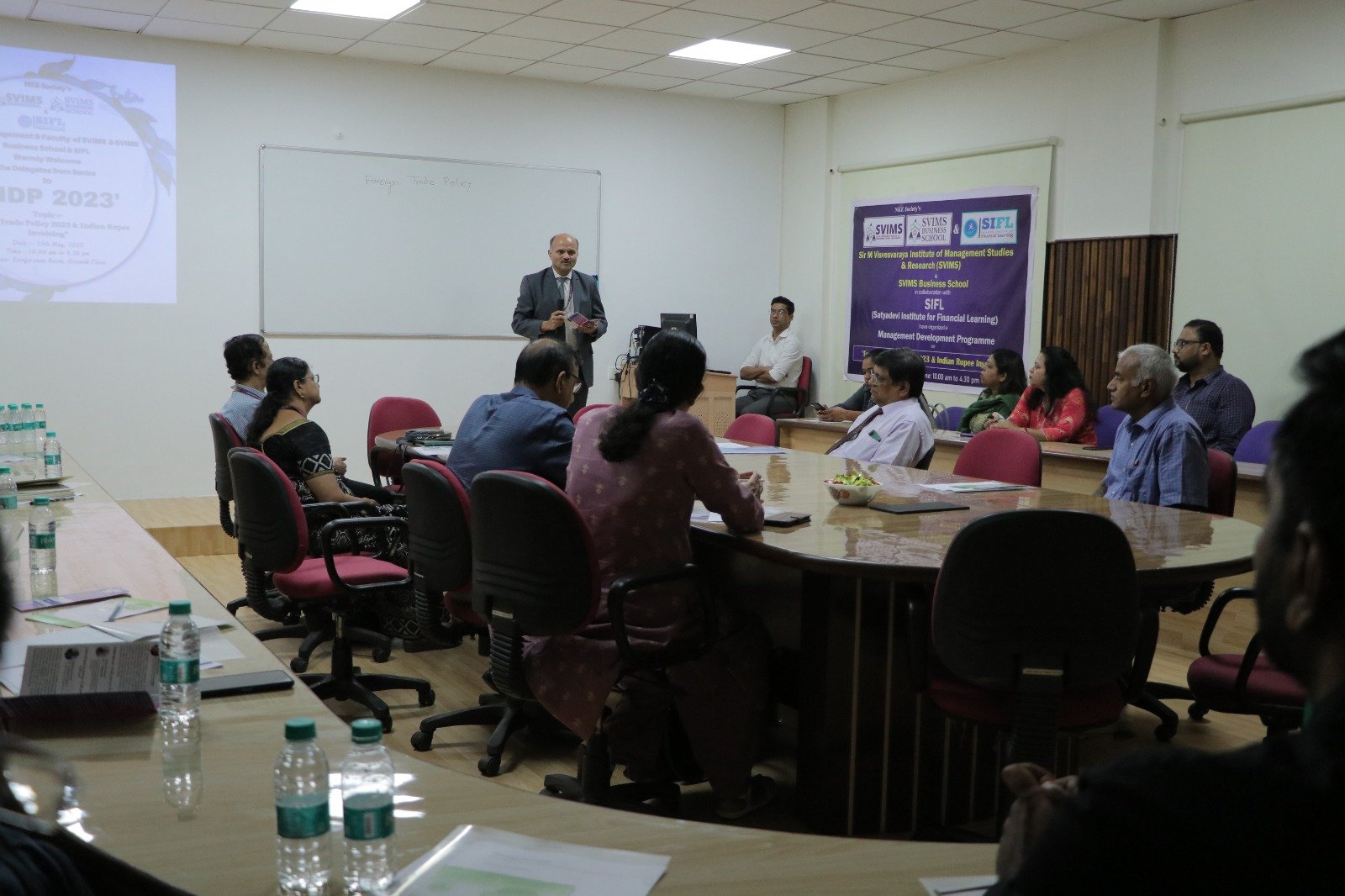 SVIMS and SVIMS Business School in collaboration with Satyadevi Institute for Financial Learning (SIFL) have organized a one day MDP on “Foreign Trade Policy & Indian Rupee invoicing” which was conducted in the ground floor Conference Hall of SVIMS campus.