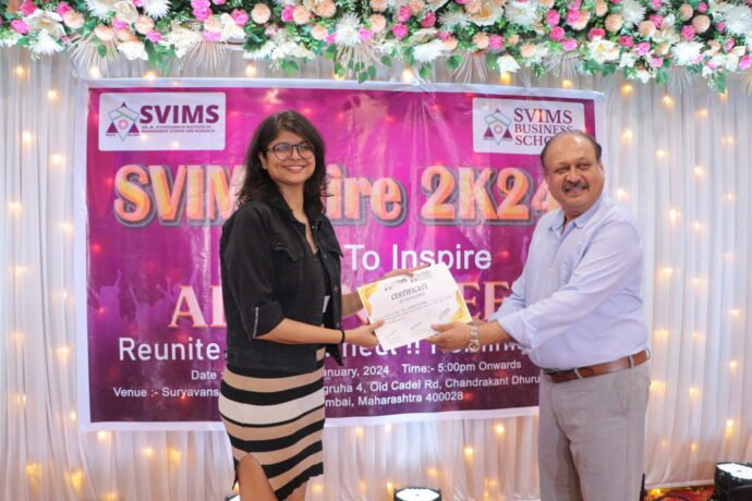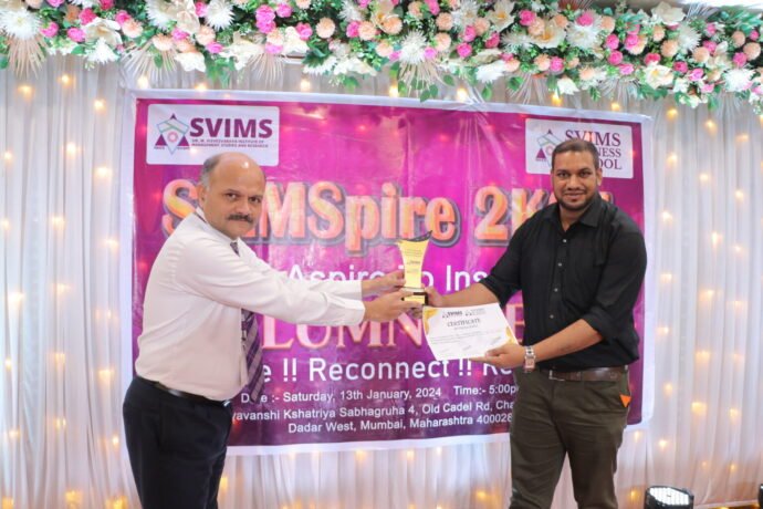 SVIMS B-School welcomed their Alumni on Saturday 13th January ’24 at The Suryavanshi Banquet Hall, Dadar, Mumbai. The Alumni Association of SVIMS organised “SVIMSpire ’24 a programme to connect and bring together its prestigious Alumni.