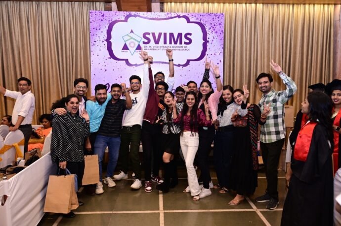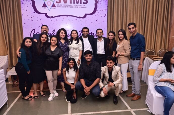 The Alumni Association of Sir M Visvesvaraya Institute of Management Studies & Research had organised “SVIMSPIRE 2023” a programme to facilitate, consolidate and coordinate Alumni Activities at Kohinoor Banquet Hall on 25th March 2023. The alumni meet is to reconnect with the Alumni and celebrate their success and various achievements. The Alumni started arriving at the venue by 7.30 pm and they were received by the registration team and they have been asked to fill the registration form. The Alumni Meet started with a welcome address by our Director Dr. Purshottam Patil following this Mr. Parthasarathi Naik, President of NKES society addressed the crowd. Our esteemed trustee Mr. Anant Banwasi felicitated the guest of honour with a Tulsi Sapling.